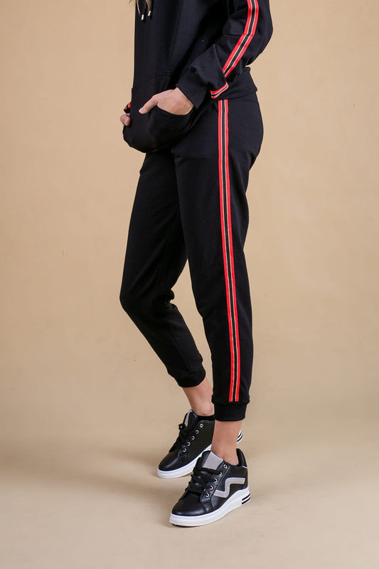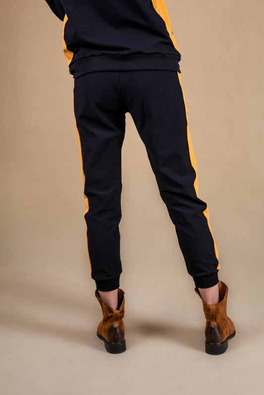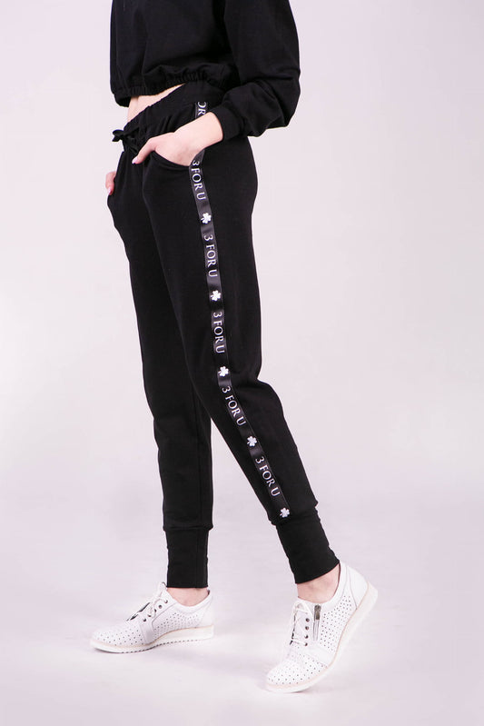 SPODNIE DRESOWE DAMSKIE ZE ŚCIAGACZEM I LAMPASEM CZARNE