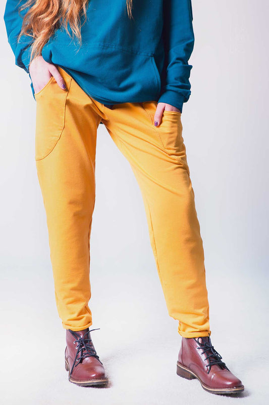 SPODNIE DAMSKIE DRESOWE W KOLORZE MUSZTARDOWYM