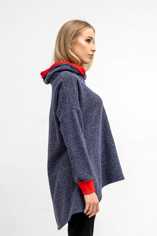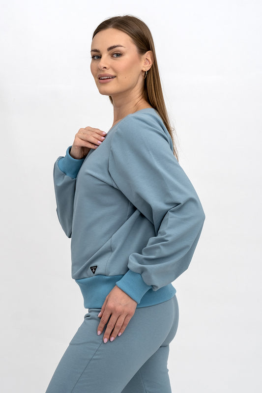 BLUZA DAMSKA "RAGLAN KSENIA" DŁUGA NIEBIESKI MELANŻ