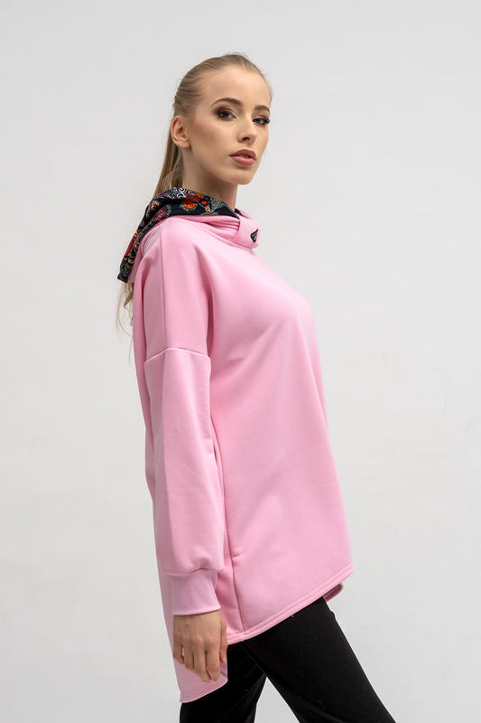 BLUZA ASYMETRYCZNA ,,RAVEL'' RÓŻOWA+WZÓR LATA