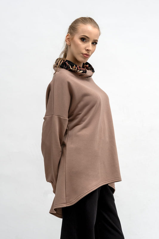 BLUZA ASYMETRYCZNA ,,RAVEL'' SZARA+WZÓR KOLOR JESIENI