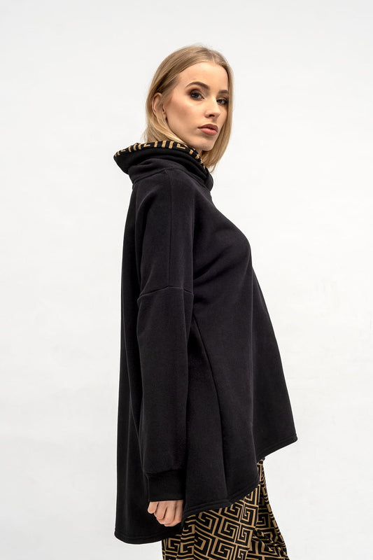 BLUZA ASYMETRYCZNA ,,RAVEL'' CZARNA+WZÓR GRECKI