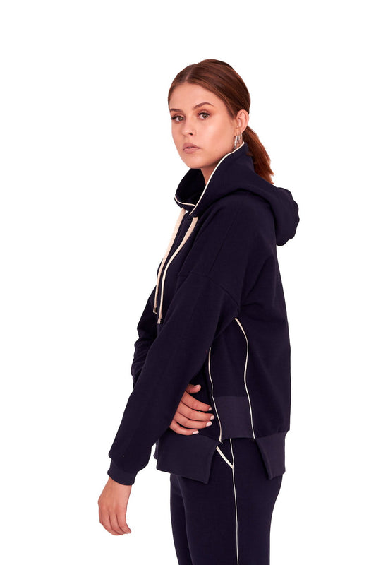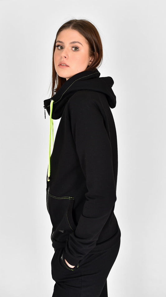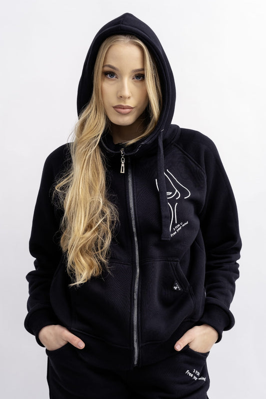 BLUZA Z KAPTUREM NA ZAMEK CIEPŁA ,,BERET" CZARNY