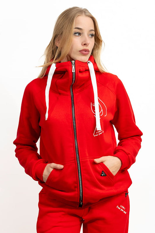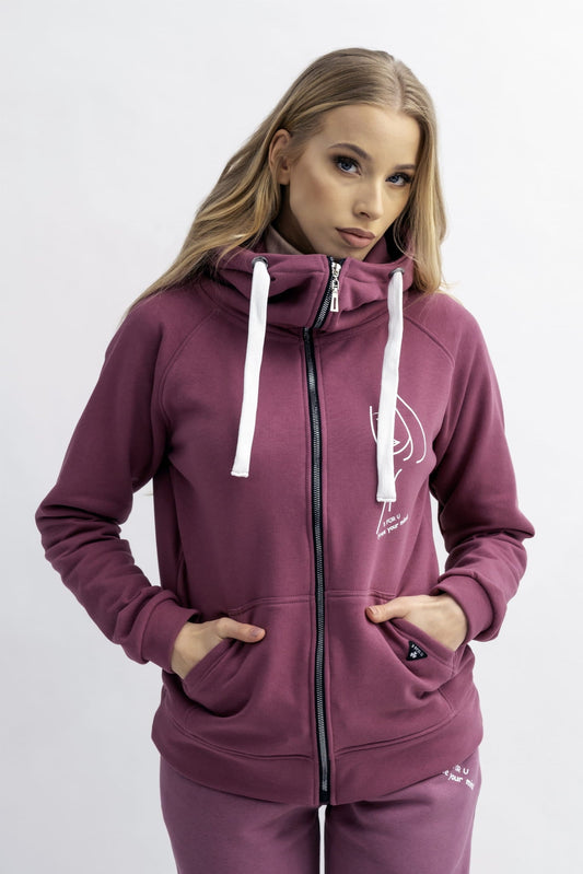 BLUZA Z KAPTUREM NA ZAMEK CIEPŁA ,,BERET" BORDO