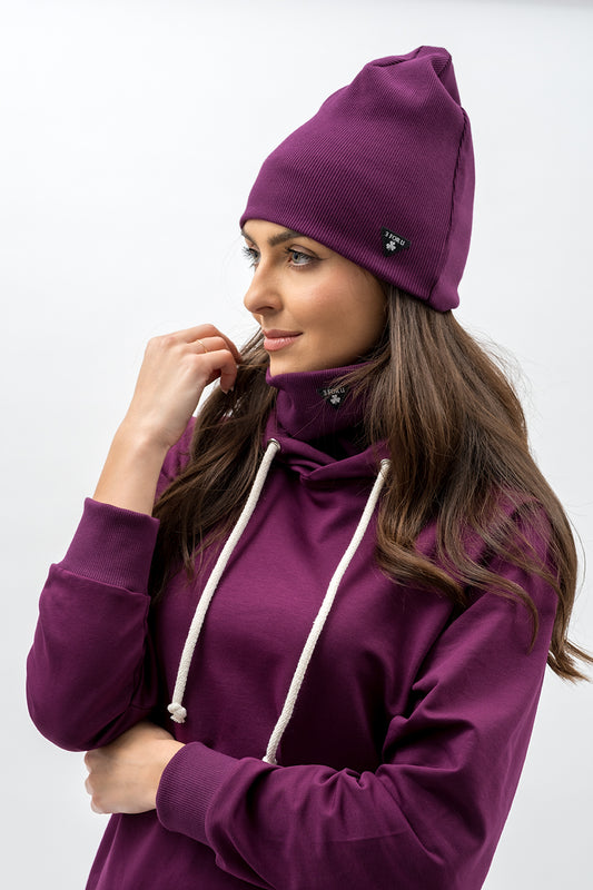 KOMPLET,, CZAPKA Z KOMINEM" BAKŁAŻAN
