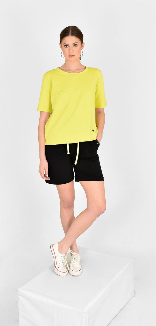 KOMPLET SZORTY+BLUZKA CELINA LIMONKOWO/CZARNY