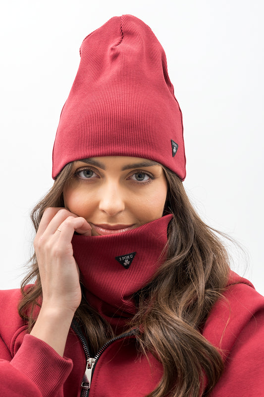 KOMPLET,, CZAPKA Z KOMINEM" BORDO
