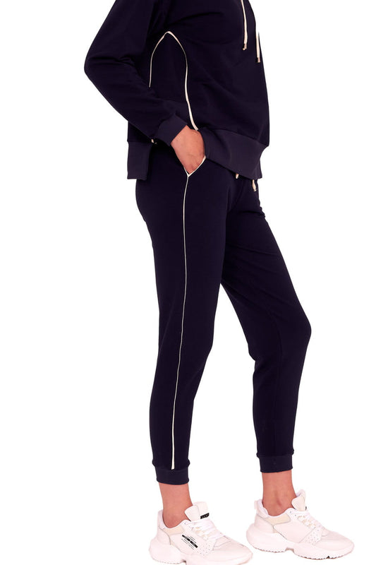 SPODNIE DRESOWE DAMSKIE ZE ŚCIAGACZEM I LAMPASEM CZARNE