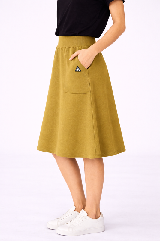 SPÓDNICA TRAPEZOWA ,,NOEL" MUSZTARDOWA OLIWKA