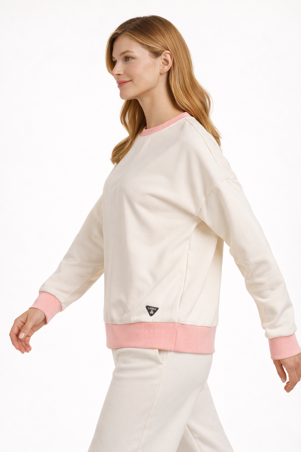 Luźniejszy krój i miękki materiał sprawiają, że bluza układa się swobodnie na sylwetce, dając komfort przez cały dzień. Delikatne kontrastowe wykończenia w odcieniu różu dodają subtelnego charakteru i wyróżniają model w minimalistyczny sposób.