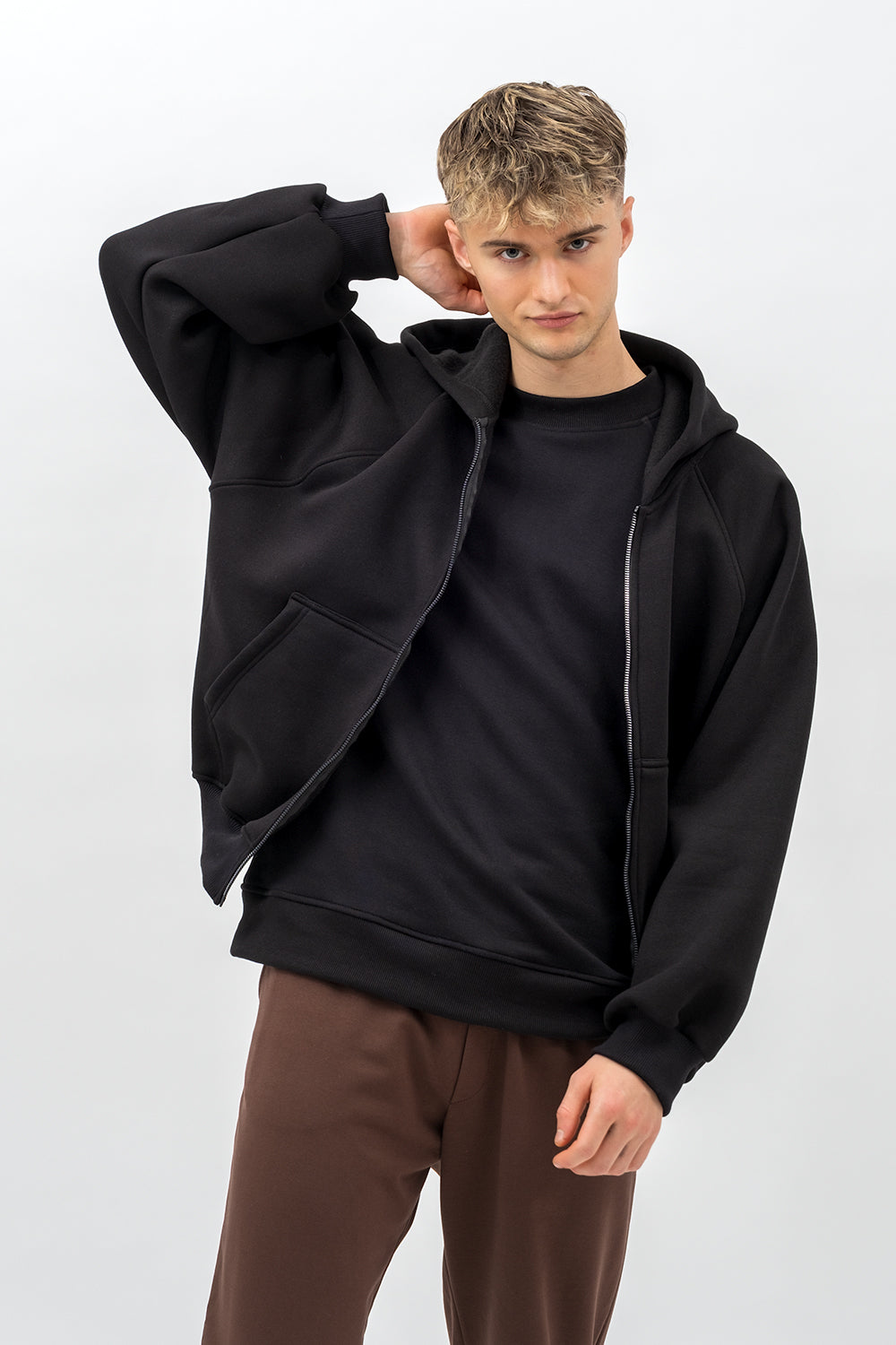 BLUZA Z KAPTUREM NA ZAMEK CIEPŁA ,,BERET" CZARNY