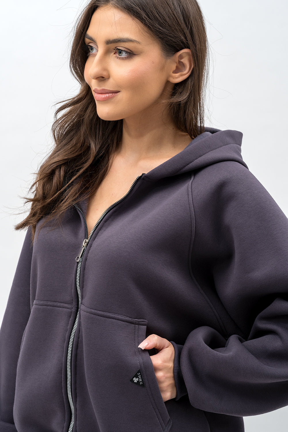BLUZA Z KAPTUREM NA ZAMEK CIEPŁA ,,IKBAL" GRAFIT