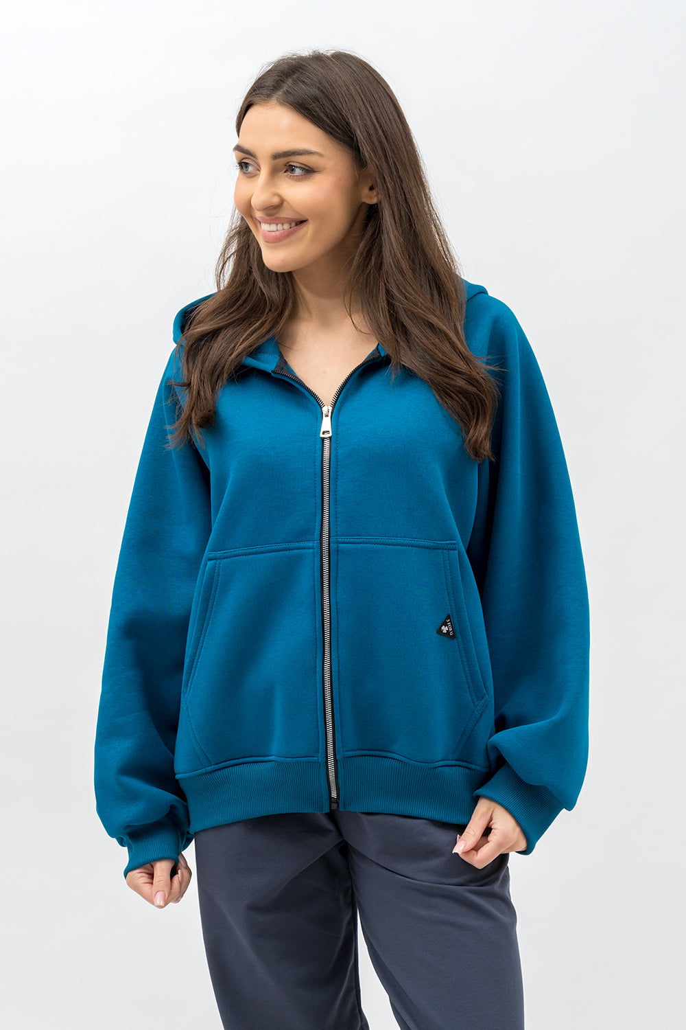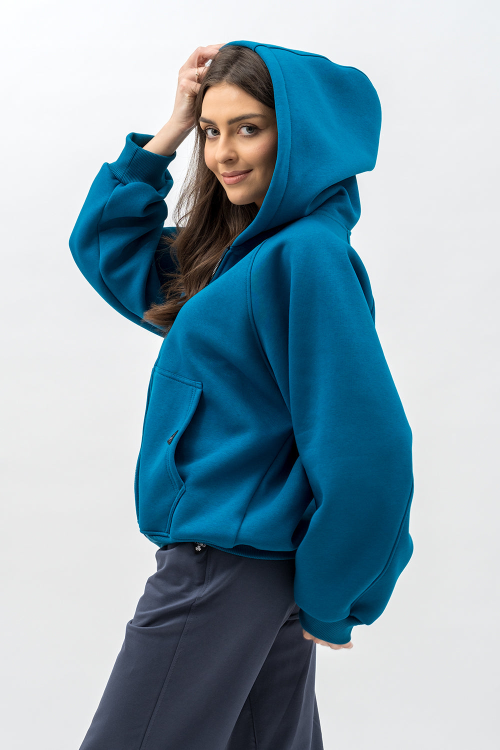 BLUZA Z KAPTUREM NA ZAMEK CIEPŁA ,,IKBAL" PETROL