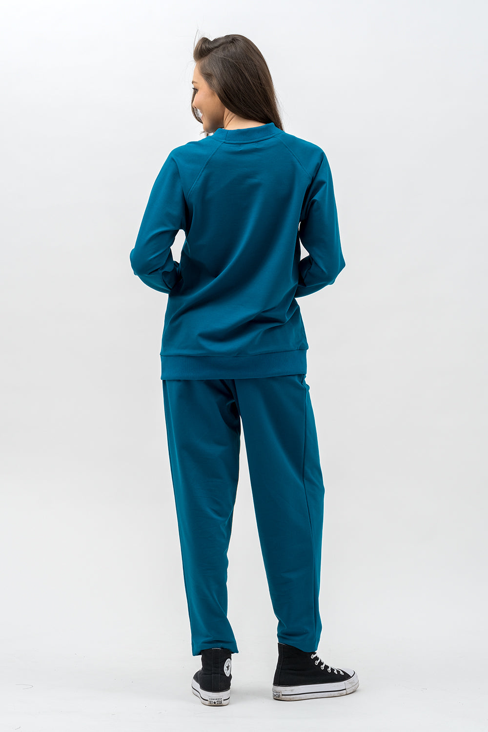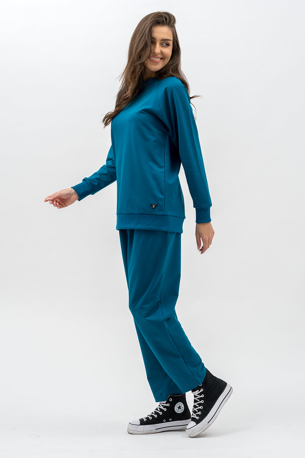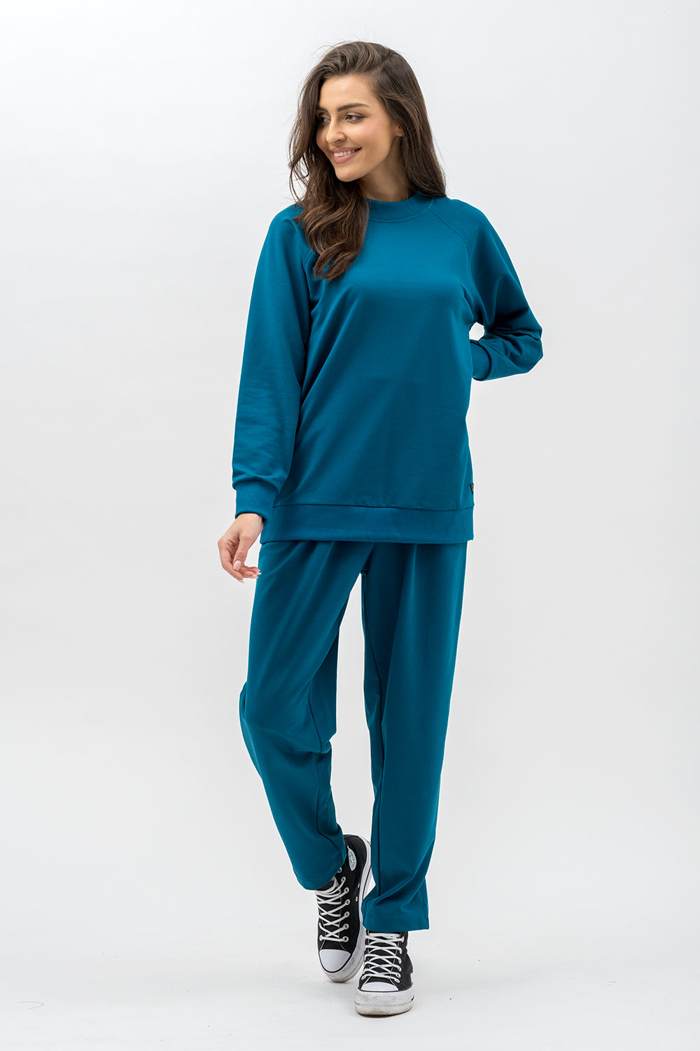 Do spodni zestawiliśmy bluzę z miękkiej, przyjemnej w dotyku dzianiny, krój  raglanowy Basic – minimalistyczny, ale pełny charakteru.