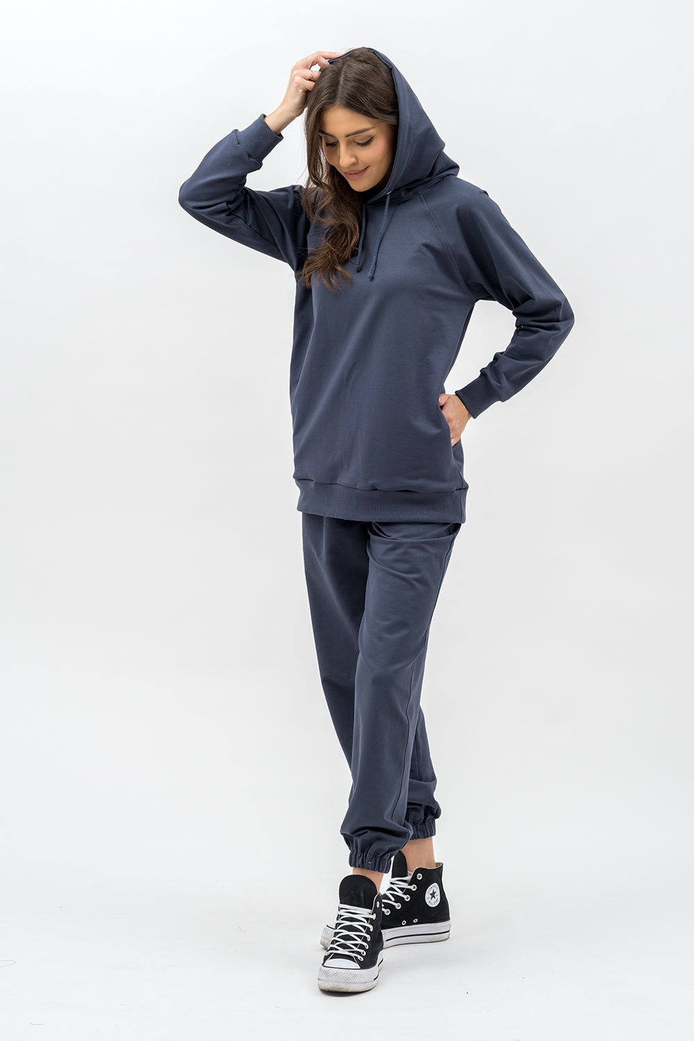 Bluza raglanowa z kapturem w którym jest sznurek .Bluza ma ukryte kieszenie i miękkie wykończenie, które otula.