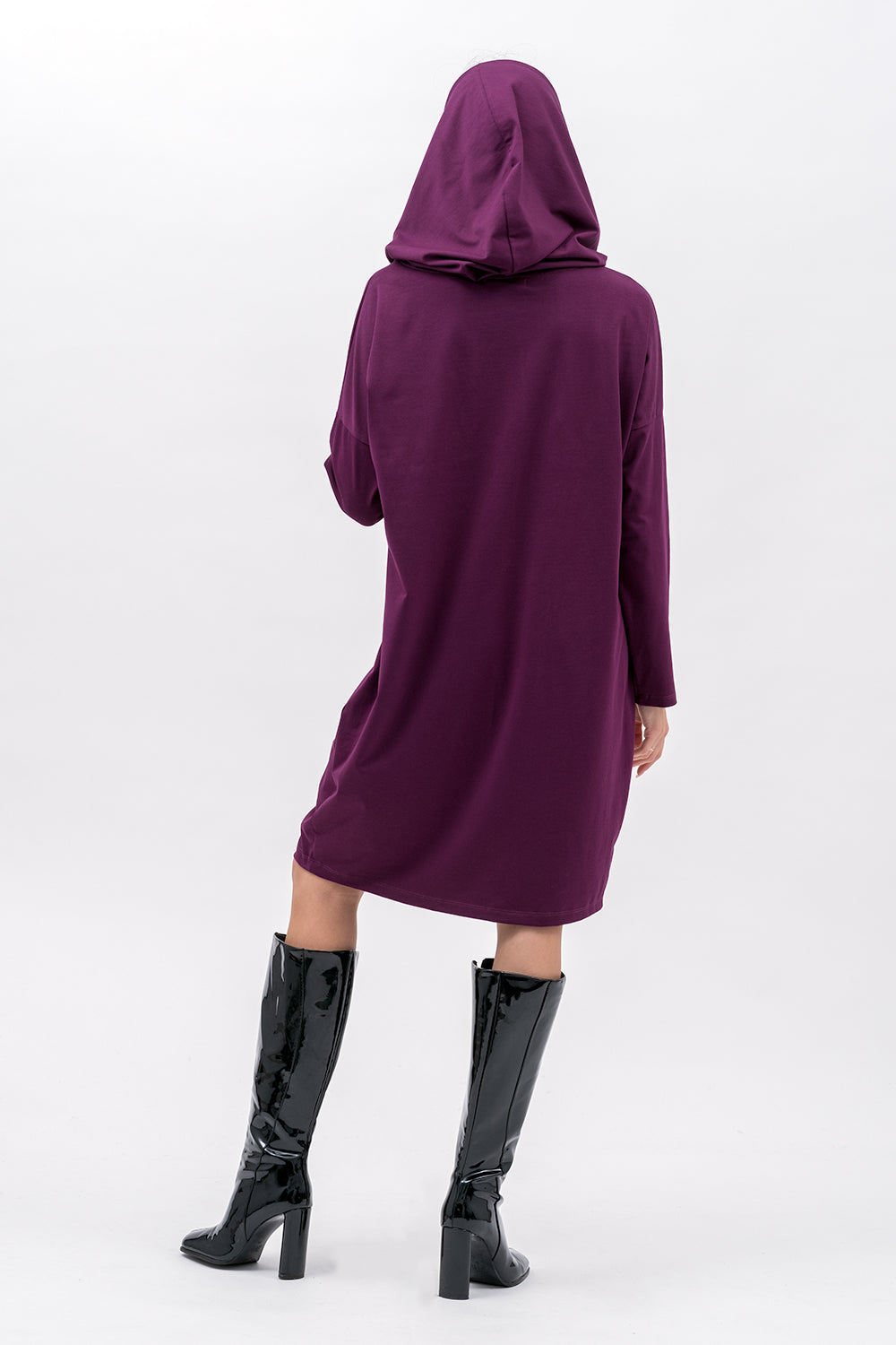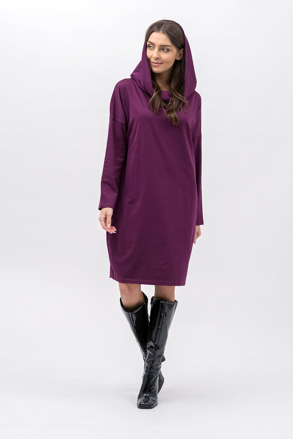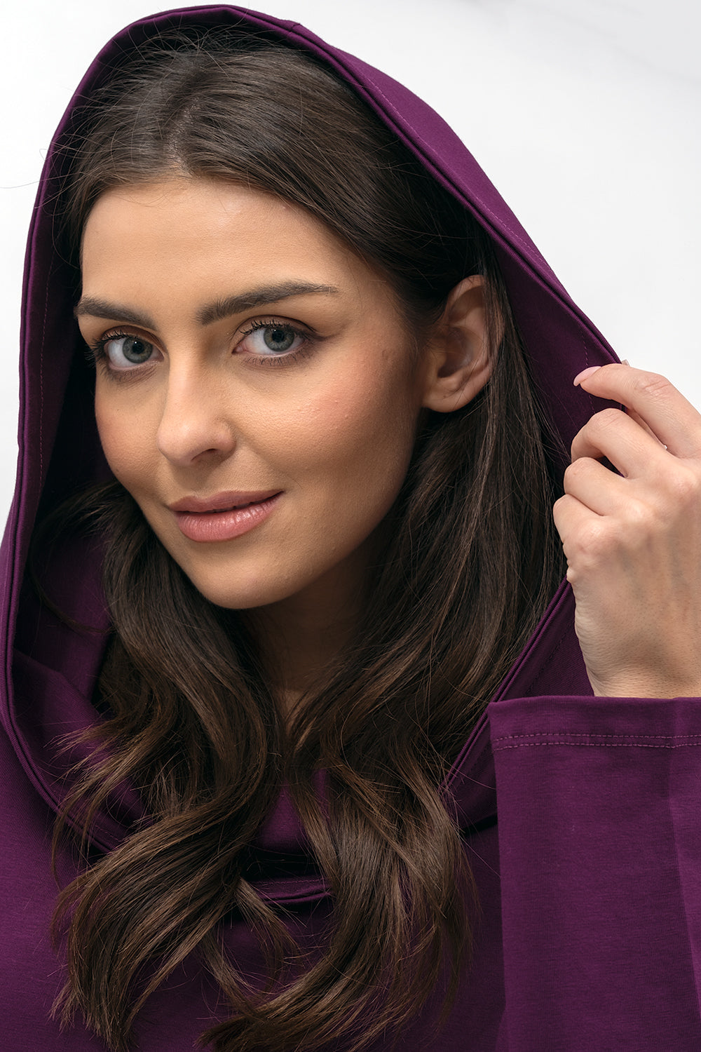 Ta wyjątkowa sukienka z miękkiej, elastycznej dzianiny to kwintesencja komfortu i kobiecej elegancji. Ma luźny, oversizowy krój, który pięknie układa się na sylwetce, zapewniając swobodę ruchów i wygodę przez cały dzień. Jej największym atutem jest kołnierz typu 3 w 1, który możesz stylizować na różne sposoby: jako kaptur, gdy chcesz dodać stylizacji casualowego charakteru, opuszczony na ramiona, tworzy romantyczny dekolt i kobiecy akcent, złożony pod szyją, pełni rolę ozdobnego kołnierza – idealnego pod kurtkę lub płaszcz.