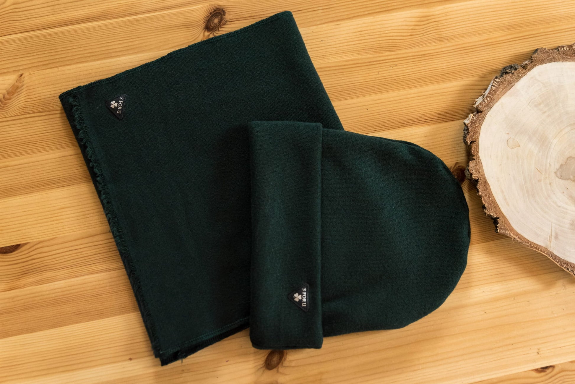Ciepły szalik w odcieniu pięknej zieleni butelkowej , to idealne dopełnienie zimowych stylizacji.